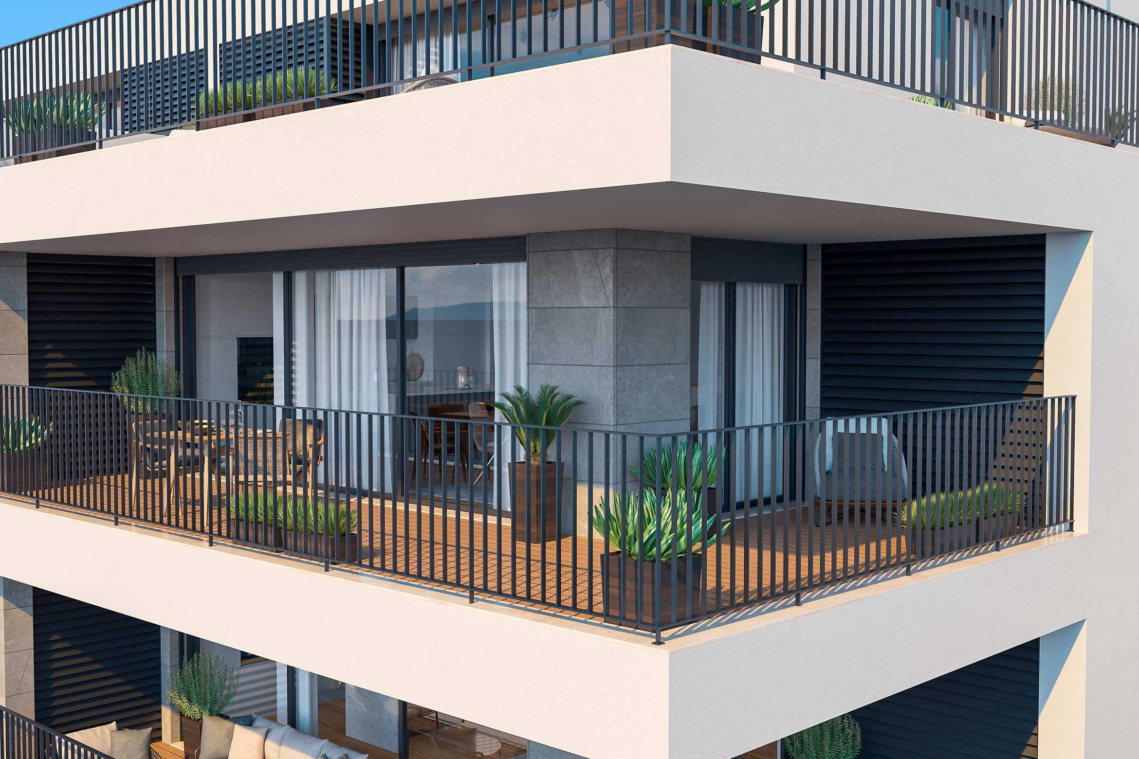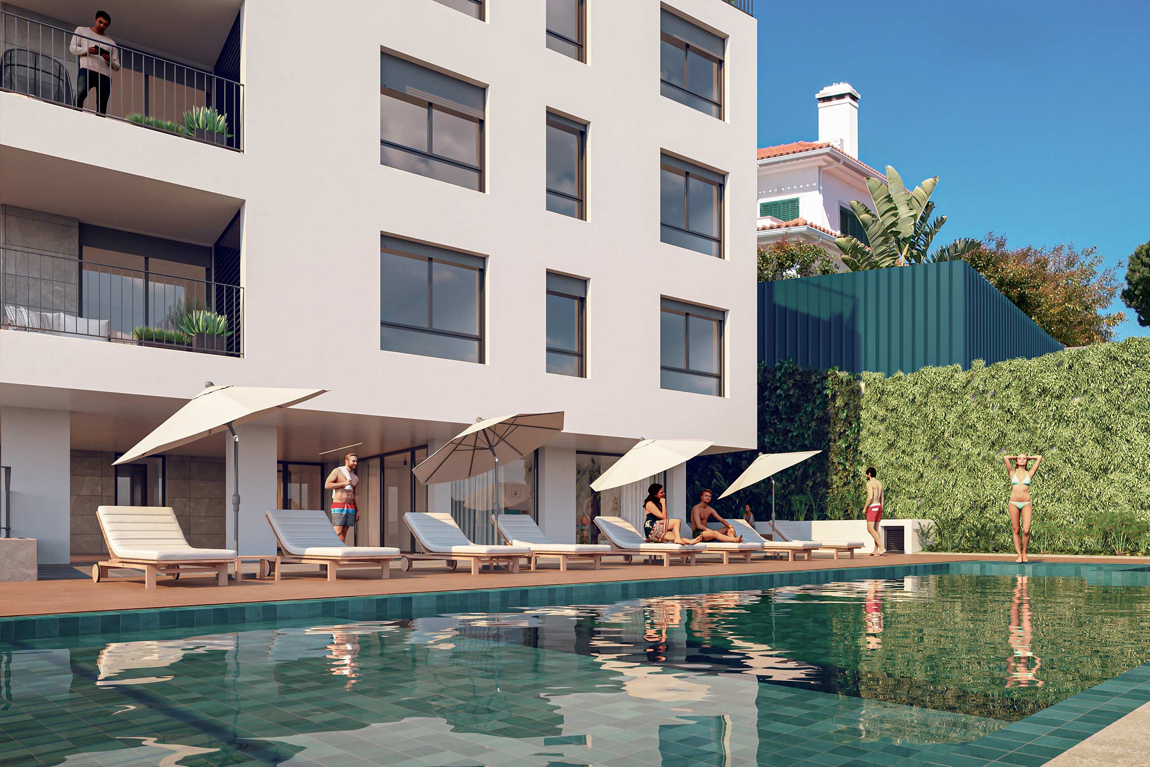 Os novos apartamentos, inseridos num condomínio privado, privilegiam o espaço exterior e o convívio, apresentam uma sala social, um Kids e Teen Club e uma piscina exterior perfeitamente enquadrada numa ampla zona verde.